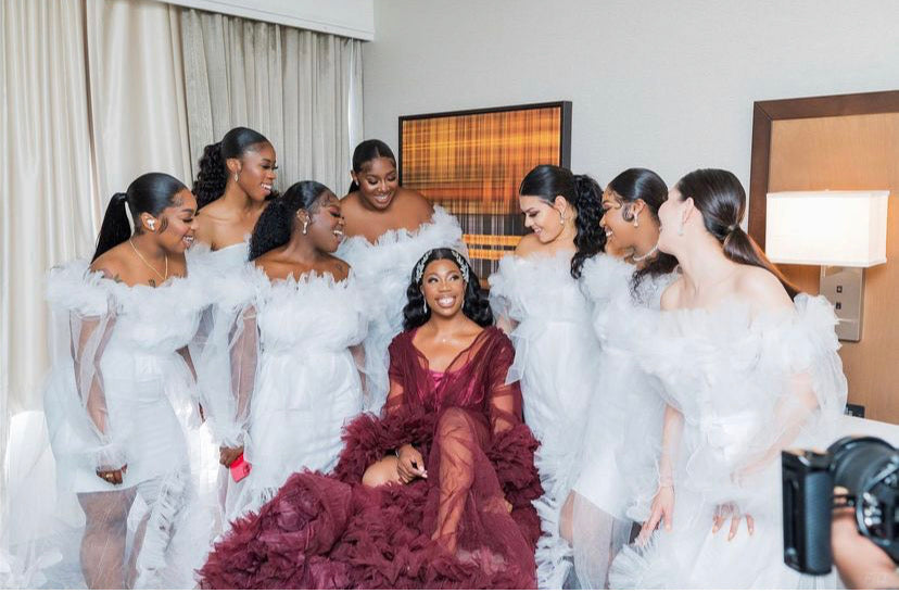 Our exclusive collection of customizable bridal party robes ensures everyone feels elegant and comfortable. Choose from delicate sheer fabrics, luxurious satins, or bold designs with dramatic ruffles. Each style features flowing sleeves, lace trims, or eye-catching embellishments, in a palette from soft to rich tones, perfect for unforgettable pre-wedding moments.