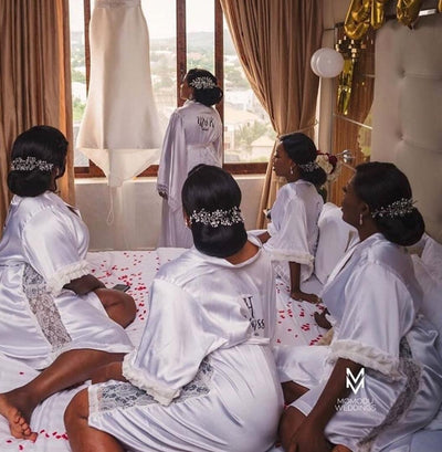 Our WP- 003 bridal party robes combine elegance and comfort with customizable options tailored for your special day. Crafted from delicate sheer fabrics, luxurious satin, or bold designs featuring dramatic ruffles, each robe showcases flowing sleeves, intricate lace trims, or striking embellishments. Available in a versatile palette ranging from soft pastels to rich hues, these robes elevate pre-wedding moments with a refined, expert touch.